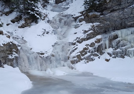 Klingender Wasserfall beim YETI-Abstieg, genau wie am Moritzberg (falls es da mal richtig lange gefriert)